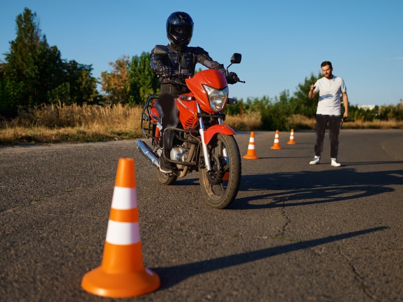 When riding a motorbike you almost always have to react within seconds in dangerous situations. You will learn how to react in time through different sections of the route and practice sessions.